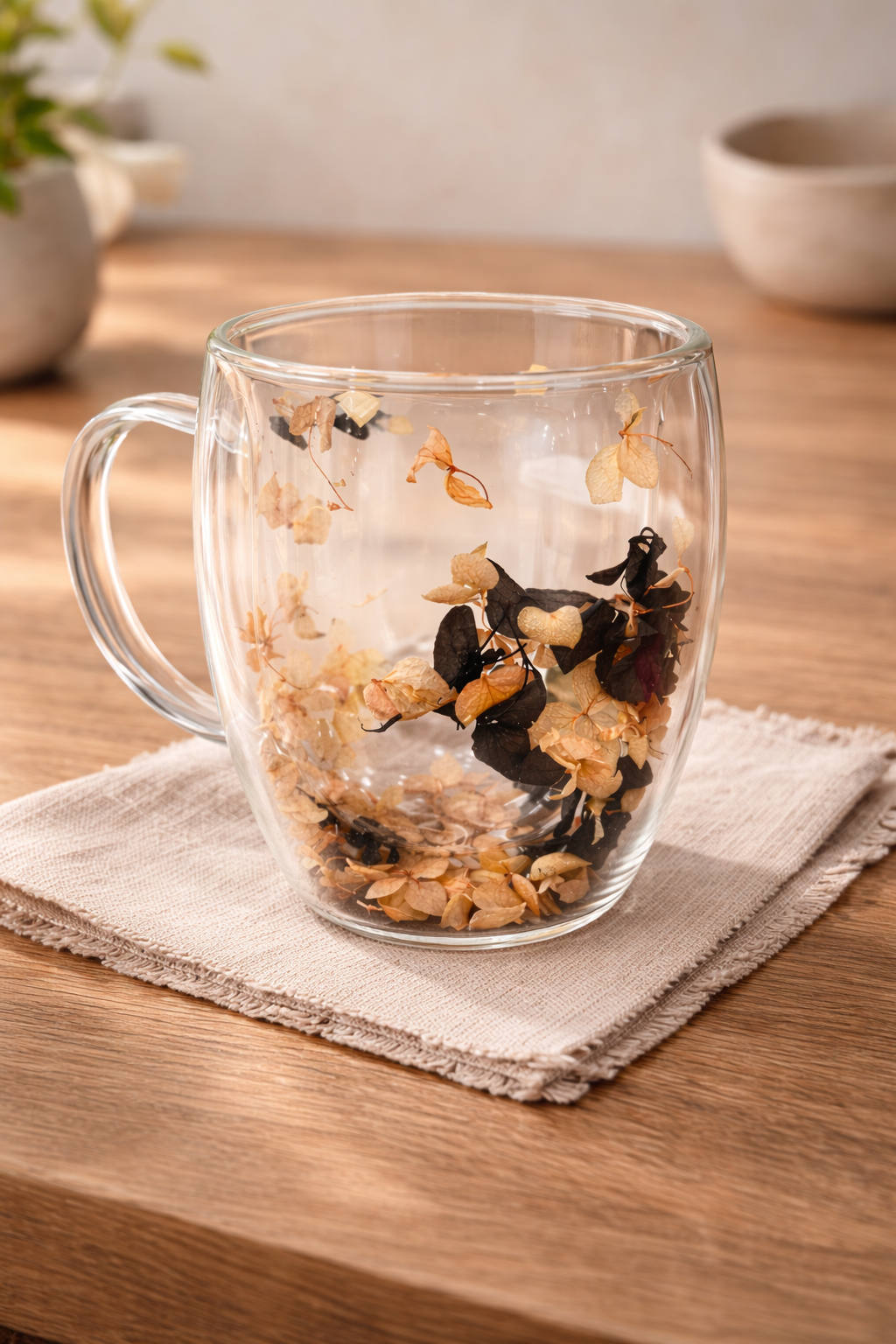Aporta un detalle floral que enmarca cada pausa. Su presencia acompaña momentos tranquilos alrededor de la mesa.