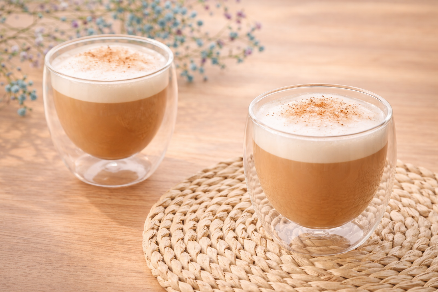 El doble vidrio conserva la temperatura mientras el vapor dibuja su forma.